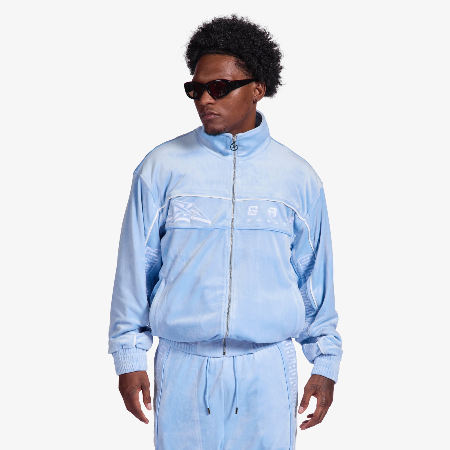 "Harlem" Velour Track Jacket (baby blue)